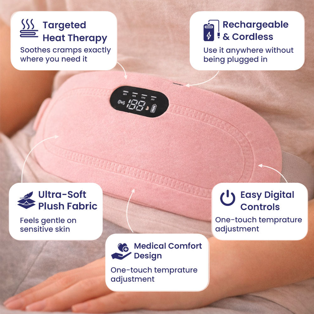 Heat therapy improves blood circulation and relaxes uterine muscles, which helps reduce cramps, bloating, and stiffness. Using a menstrual heating belt is a drug-free way to manage period pain at home or on the go.